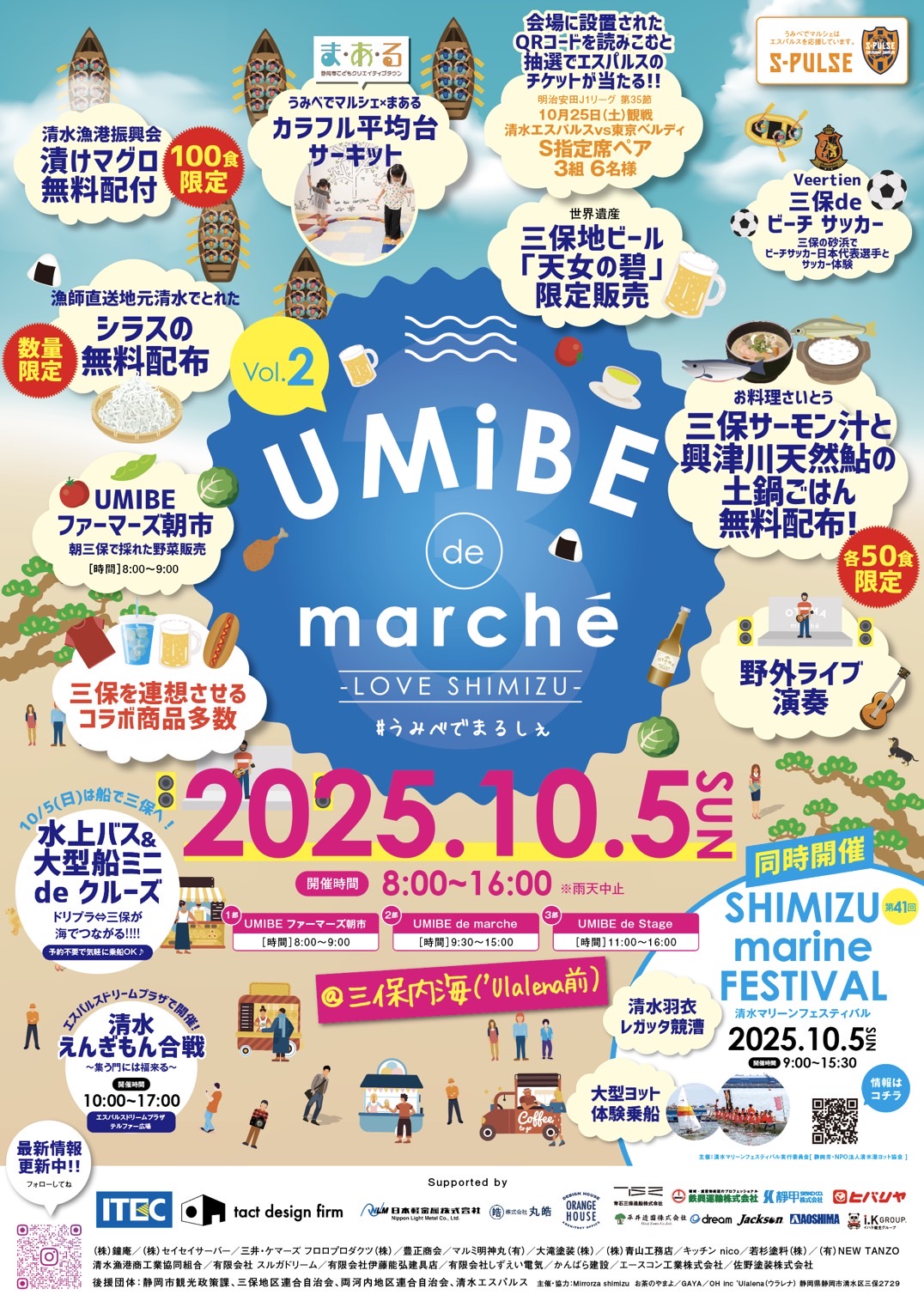 このたび、2025年10月5日に三保内海にて開催される「UMIBE de marche」に協賛させていただきます。